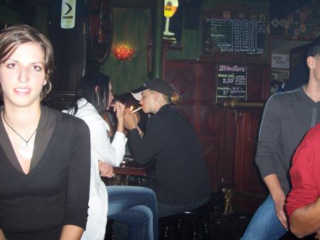 Dimanche on est allés manger une pizza avec les collègues de travail d'Aline. A droite, les 2 roumaines (Claudia et Claudia), et vous ne pouvez malheureusement pas voir Aun, le cambodgien, puisqu'il prend la photo... hè hè hè! Ce sont qd-même les petits belges ki sont les plus bruns!